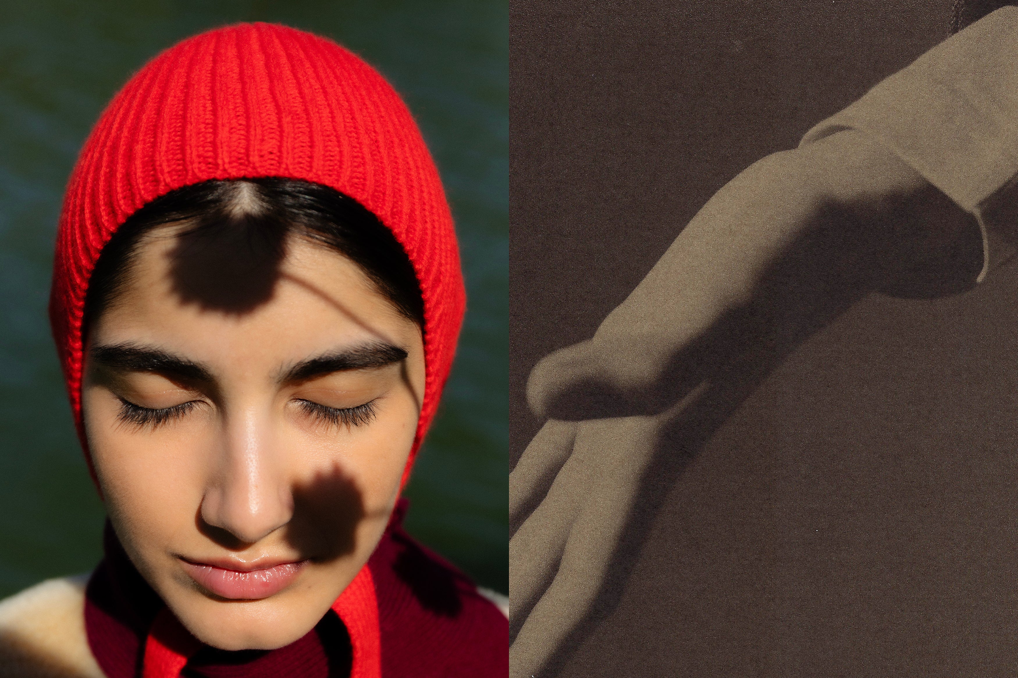 Marl Soft Wool Blocked Tied Hood - Soft Yellow/Grey Marl