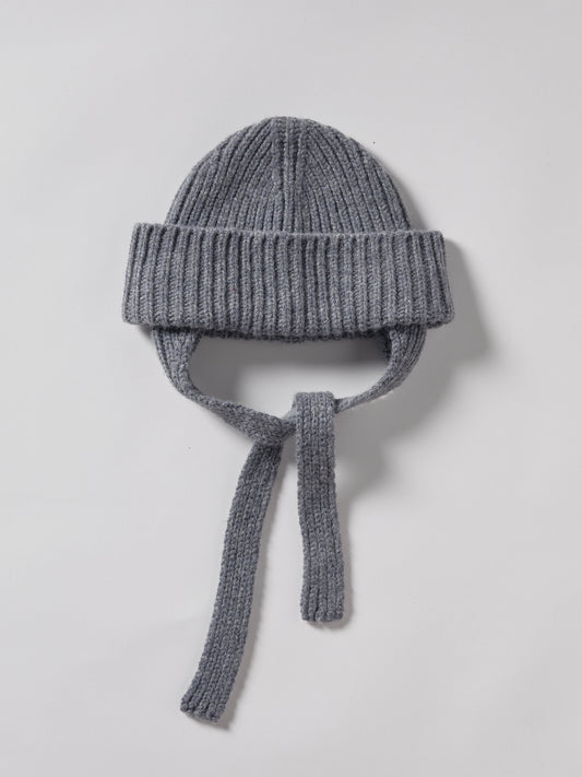 Soft Wool Tied Bonnet Hat - Dark Grey/Soft Blue