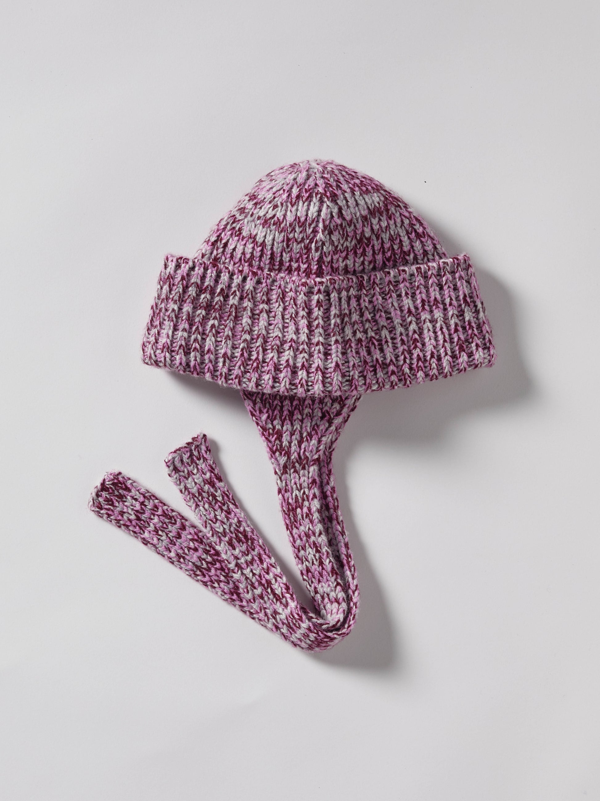 Marl Soft Wool Ear Flap Hat - Burgundy/Pink Marl