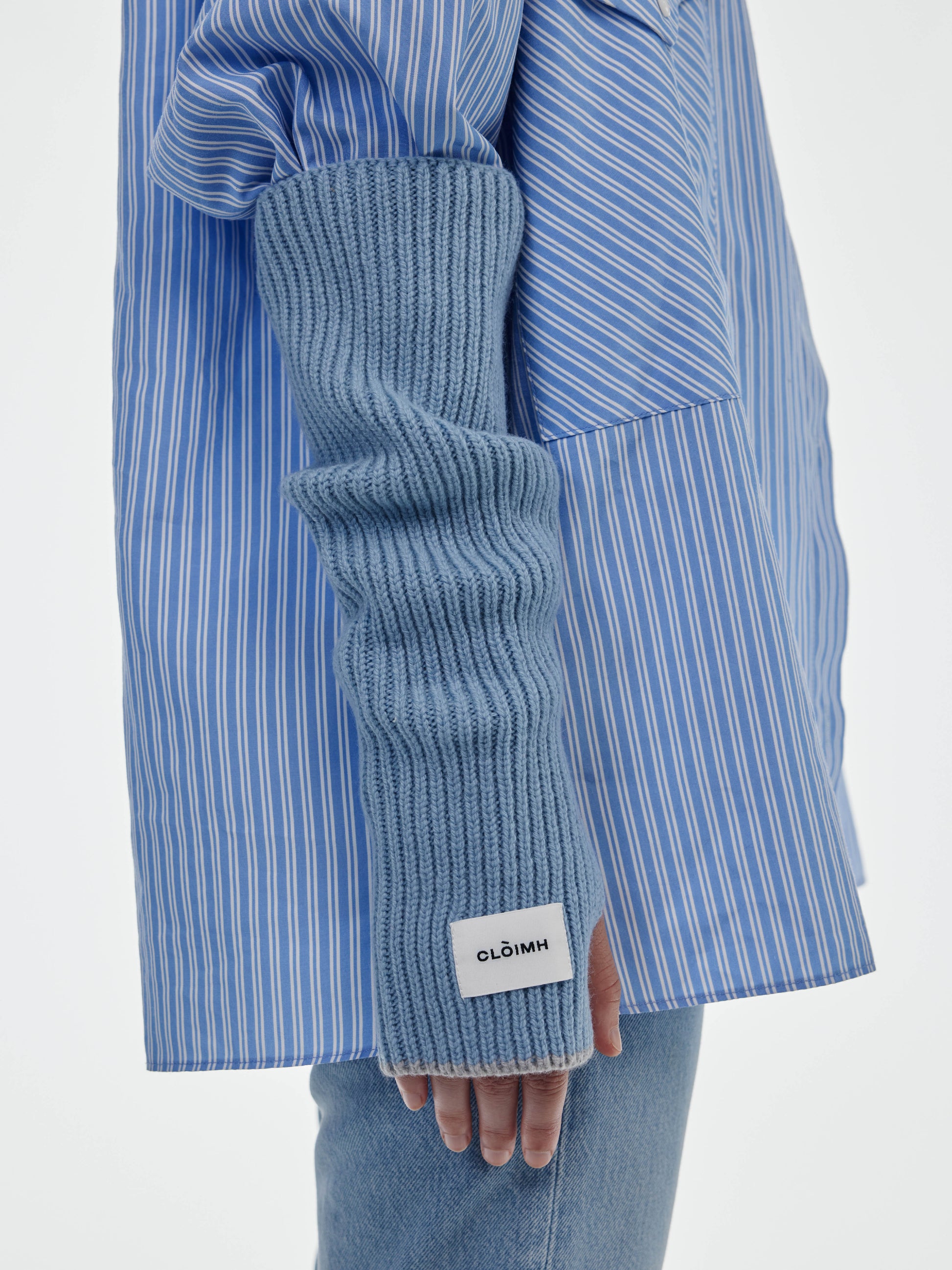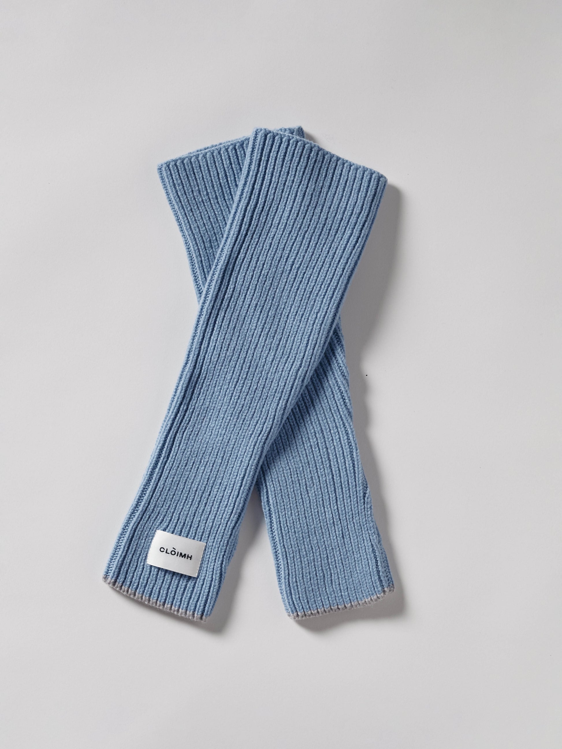Soft Wool Fingerless Gloves - Soft Blue/Light Grey